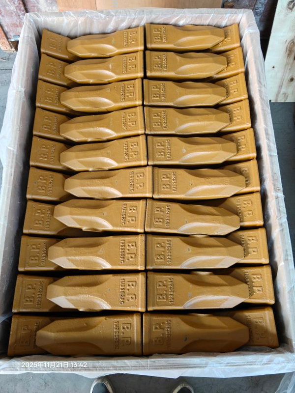 The bucket teeth on both sides of the excavator are worn about 30% faster than those in the middle. The bucket teeth on both sides and in the middle can be interchanged for further use, so as to reduce the repairs times and indirectly increase the service life of the bucket teeth.